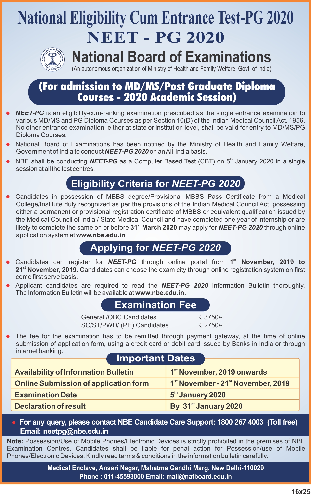 Admission to MD / MS / Post Graduate Diploma Courses - 2020